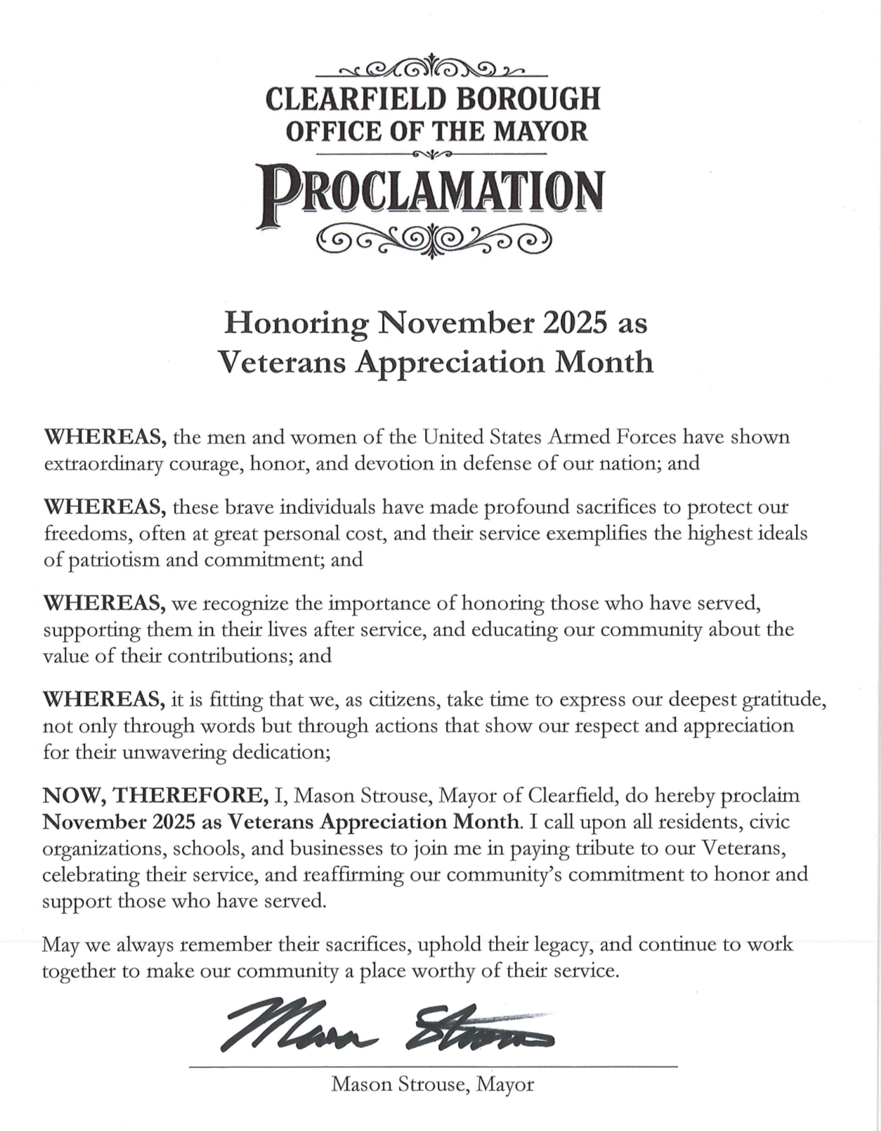 Proclamation: November 2025 is Veterans Appreciation Month